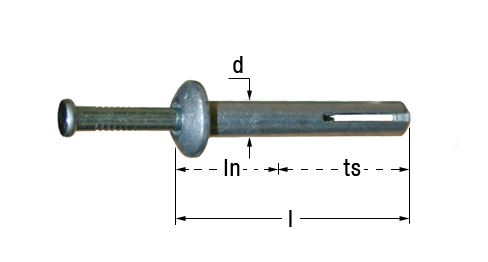 - Der Metallnageldübel “MND“ mit Pilzkopf besteht aus einer Zinkdruckguß-Hülse und einem verzinkten Stahlnagel. (Dübel und Nagel sind vormontiert.) Der gesetzte Nageldübel ist mit einem einfachen Handwerkzeug nicht demontierbar (Schutz gegen Vandalismus) und bietet dadurch eine dauerhaft sichere Befestigung von Unterkonstruktionen, Schildern, Blechen, Metall-Ständerwerken auf Beton, Ziegeln und anderen festen Baustoffen.