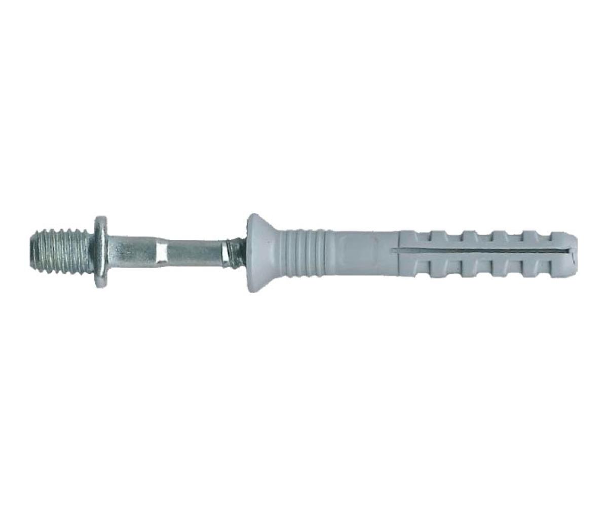 - Der Nageldübel mit metrischem Anschlußgewinde “FIX-M“ (Dübel mit Senkkopf) aus reinem Nylon mit verzinktem Gewindekopf-Schraubnagel ist geeignet für Schnellmontagen mit hohen Auszugswerten in Vollbaustoffen. Das Einsatzgebiet ist z.B. die Befestigung von Kabel -und Rohrschellen mit metrischem Gewinde M 6 und M 8. Die spezielle Kopfform des Nagels ermöglicht ein Einschlagen in den Dübel, ohne das metrische Gewinde zu beschädigen.