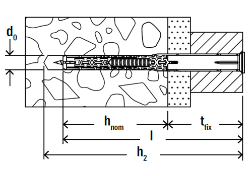 | Nutzlänge bei Verankerungstiefe hmom = 140 mm | tfix | 90 | [mm] |