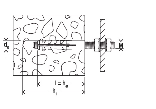 | Min. Bohrlochtiefe | h1 | 100 | [mm] |