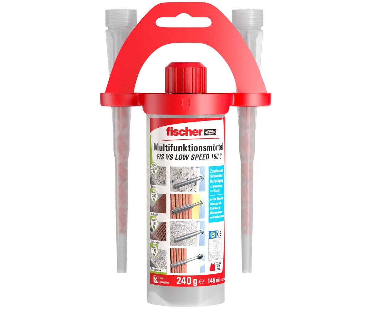 Der fischer Injektionsmörtel FIS VS ist ein 2K-Injektionsmörtel auf Vinylester-Hybrid-Basis mit verlängerter Aushärtezeit. Dies verhindert auch bei bei sommerlichen Temperaturen das vorzeitige Aushärten, wodurch der Injektionsmörtel optimal für große Bohrlochtiefen geeignet ist. Der FIS VS ist in einer Vielzahl von Systemen zugelassen und bietet damit garantierte Sicherheit für nahezu jedem Anwendungsfall. Ein umfangreiches, abgestimmtes Zubehörsortiment steigert die große Flexibilität des FIS VS. Die Injektionskartuschen können mit den fischer Auspressgeräten kraftschonend und schnell verarbeitet werden. Angebrochene Kartuschen können durch Statikmischerwechsel wiederverwendet werden.
