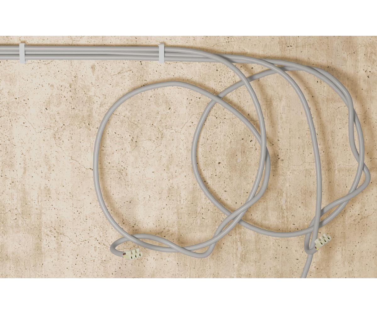 - Mit dem Befestigungsbinder können mehrere Kabel oder Rohre gebündelt und befestigt werden.