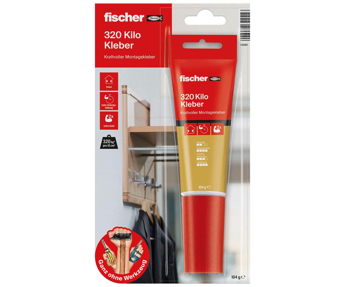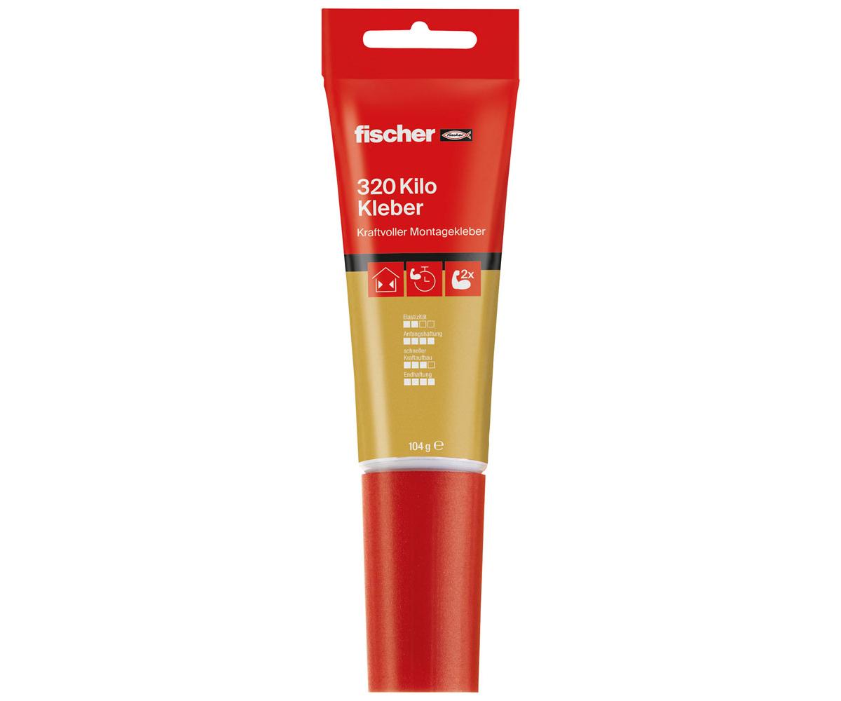 Pure Kraft. Der fischer 320 Kilo Kleber ist genau richtig, wenn etwas extrem viel und dauerhaft halten muss. Selbst das Verkleben von Garderoben - an die schwere Jacken gehängt werden - ist damit kein Problem. Befestigen ohne zu bohren und trotzdem eine hohe Performance erbringen: Eine Aufgabe, die der 320 Kilo Kleber von fischer löst. Der flexible Einsatz des 320 Kilo Kleber befestigt Steine, Regale, Schlüsselbretter und Sockelleisten. Mit der Fugenspitze der Tube lässt sich der Klebstoff präzise aufbringen.