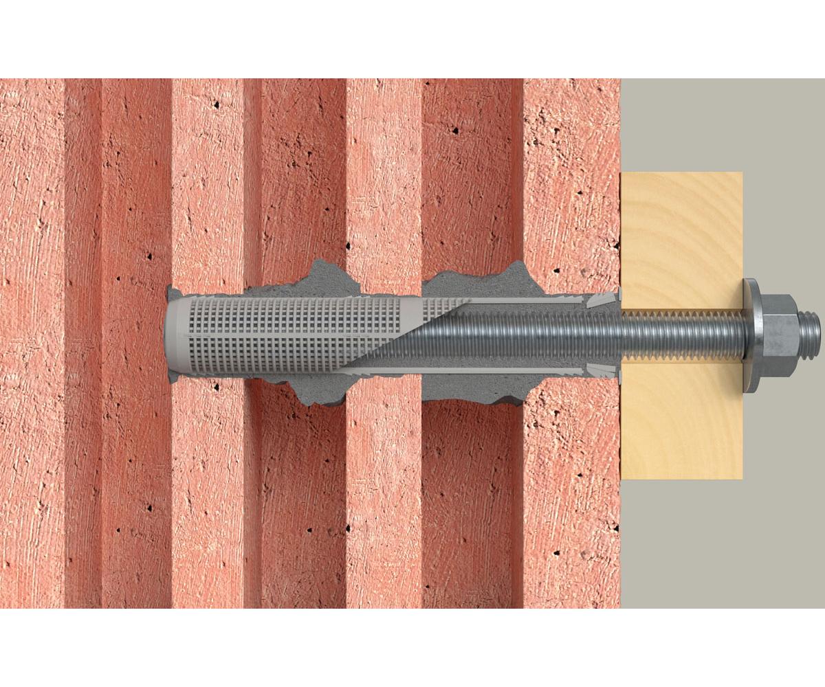 - Verankerungen in Lochstein-Mauerwerk mit Injektionsmörteln FIS V, Montagemörtel und Montagemörtel Green