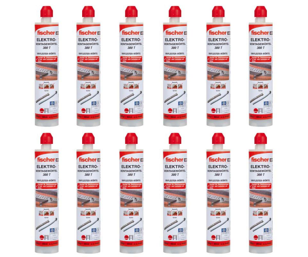 - Der fischer Elektro-Montagemörtel 300 T ist ein 2K-Injektionssystem auf Vinylesterbasis.