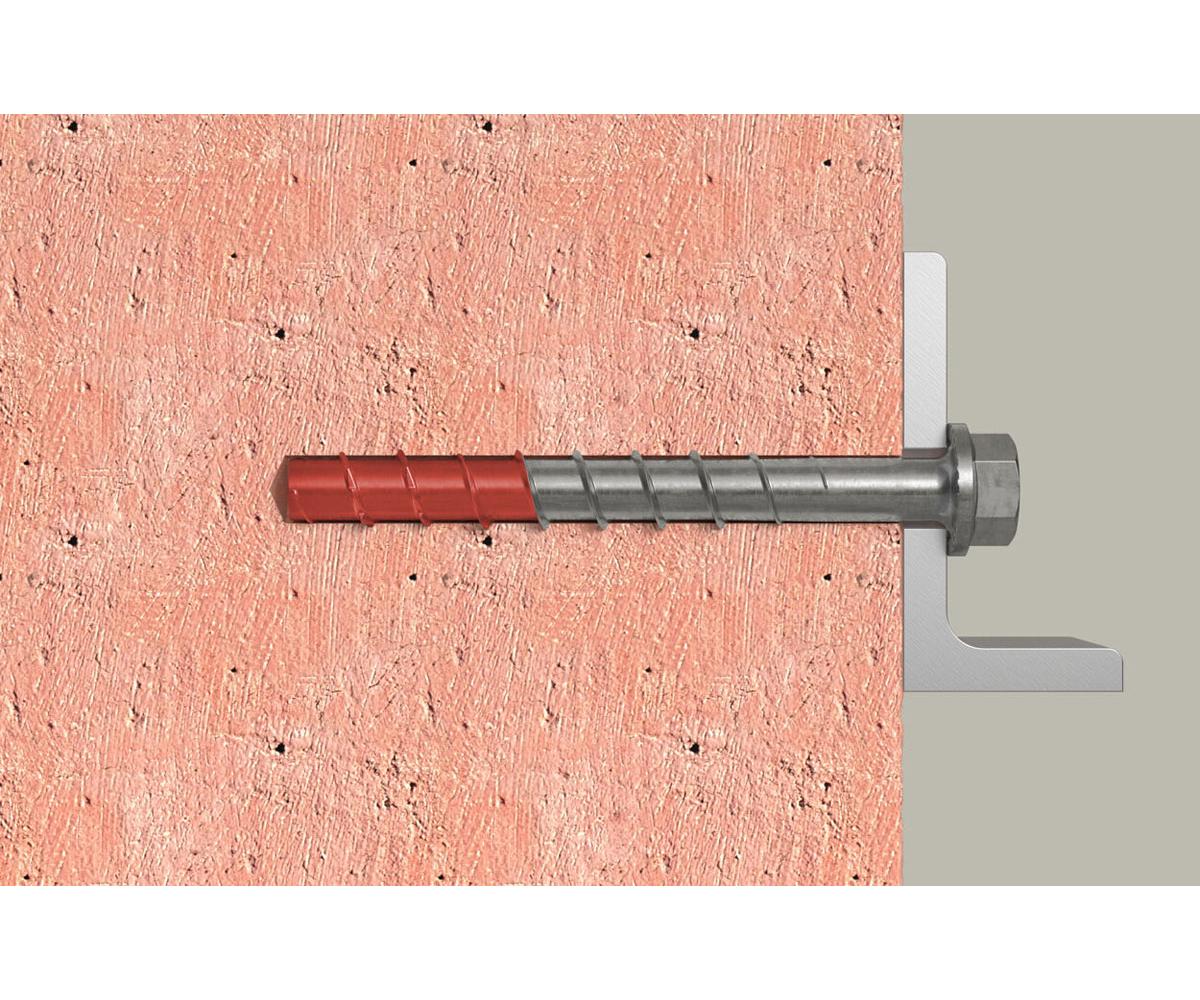 - Die kurze Ausführung mit reduzierter Einschraubtiefe ermöglicht eine geringe Bohrlochtiefe, schnelle Montage und weniger Bewehrungstreffer.