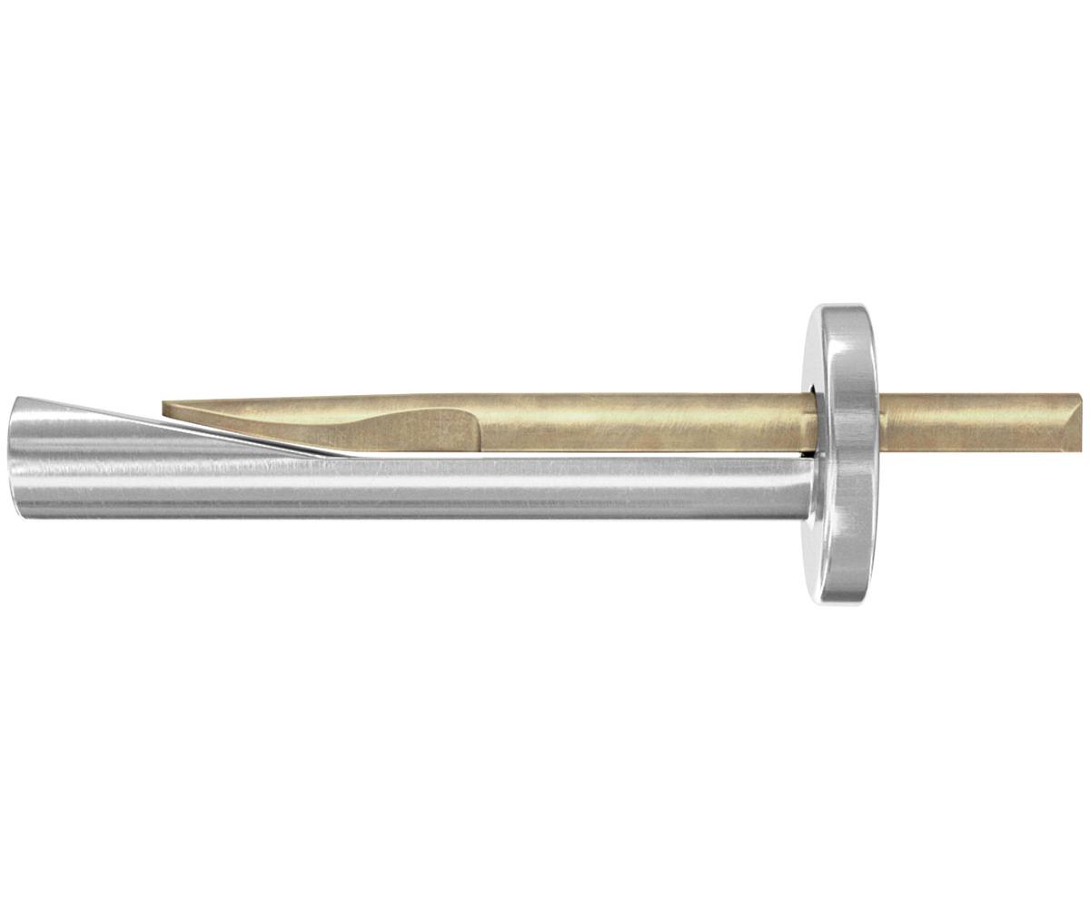 - Der bündig versenkte Spreiznagel kennzeichnet die vollständige Verspreizung des Ankers und stellt dadurch die minimale Verschiebung unter Last sicher.