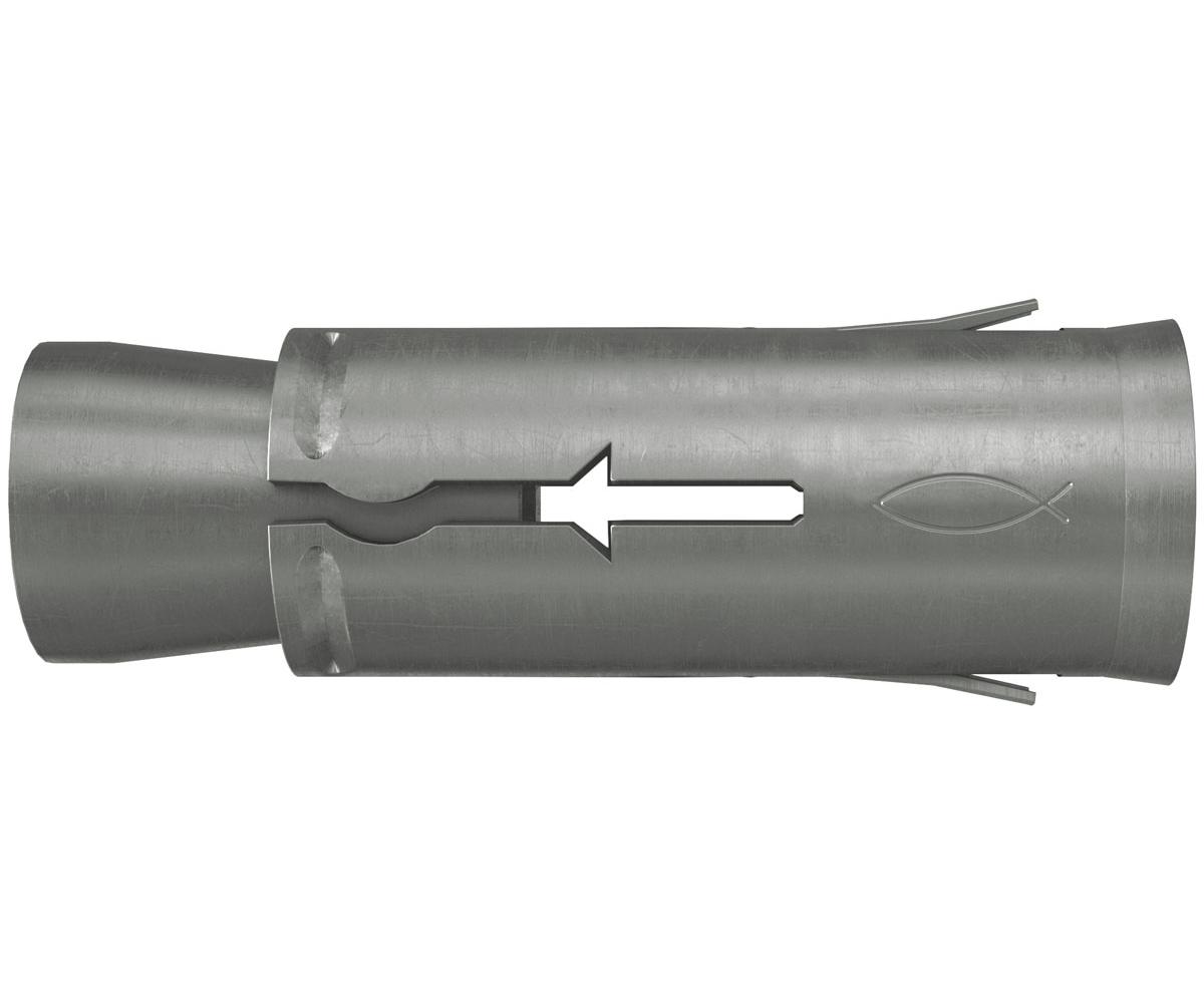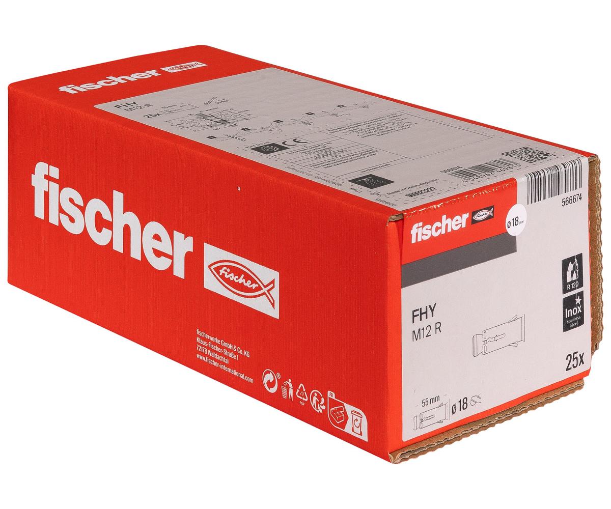 Der fischer Hohldeckenanker FHY ist ein Innengewindeanker aus A4 nicht rostendem Stahl. Der FHY wird in der Durchsteckmontage mit der Hand ins Bohrloch gesetzt und mit dem Hammer bündig zur Oberfläche des Baustoffes eingetrieben. Beim Aufbringen des Drehmoments wird der Konus in die Spreizhülse gezogen. Im Hohlraum spreizt diese auf und im Vollbaustoff verspannt sich diese gegen die Bohrlochwand. Der fischer Hohldeckenanker FHY ist ideal für die Befestigung von Holz- und Stahlkonstruktionen und Konsolen in Spannbeton-Hohlplatten im Außenbereich.