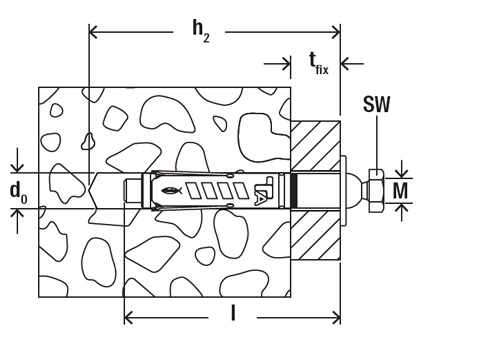 | Min. Bohrlochtiefe bei Durchsteckmontage | h2 | 95 | [mm] |