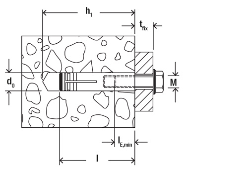 | Min. Bohrlochtiefe | h1 | 60 | [mm] |