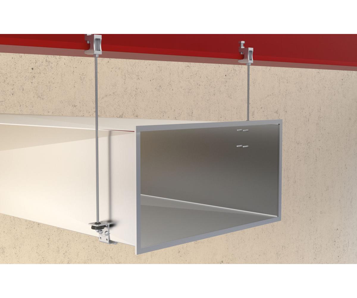 Vorteile- Das Schalldämmelement der Deckenabhänger vermindert die Übertragung der Vibrations- und Strömungsgeräusche.