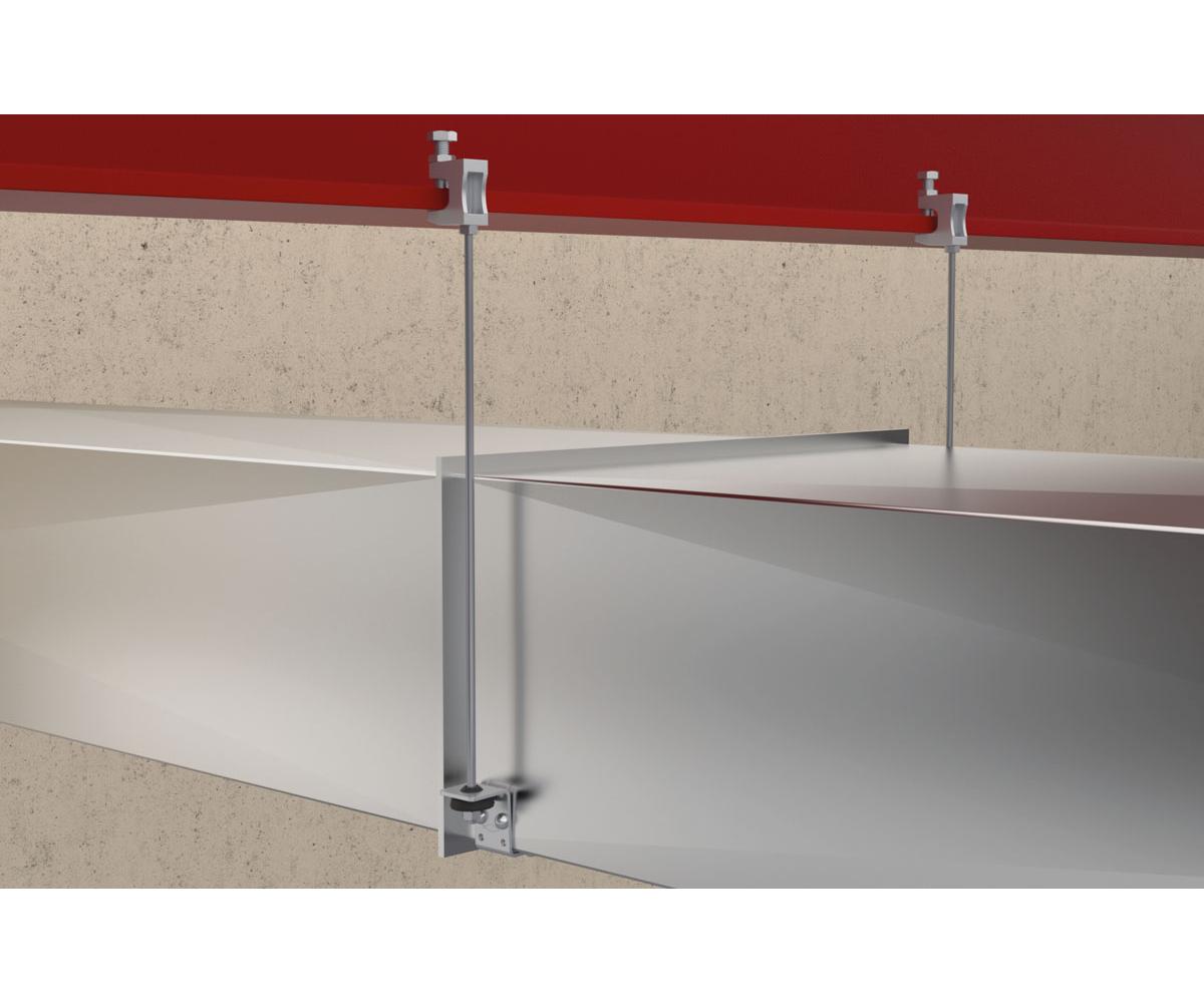 - Das Durchgangsloch in den Deckenabhängern erlaubt die einfache Ausrichtung und Höhenregulierung der Befestigung.