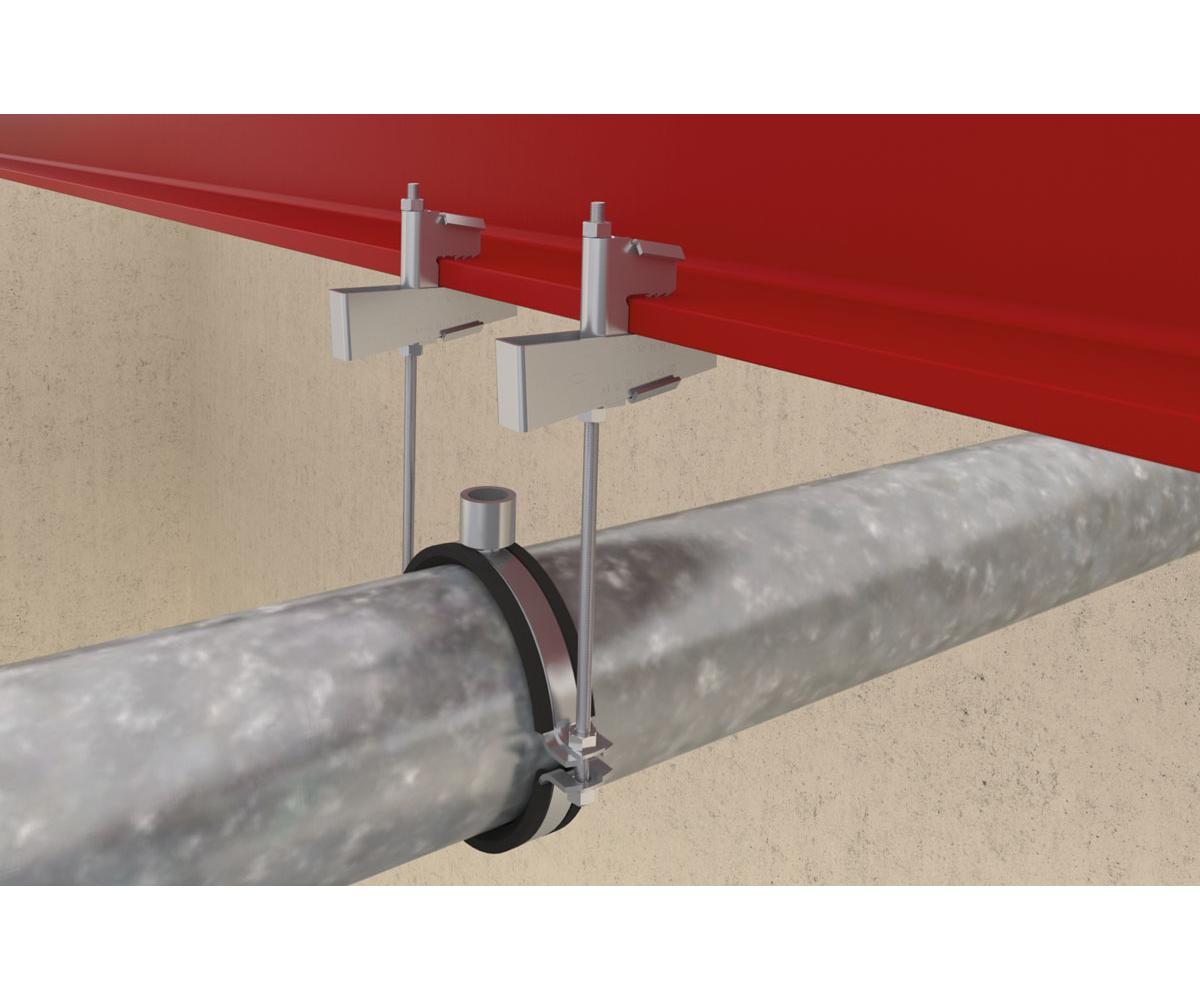- Alle Arten von Befestigungen mittels Gewindestange an Stahlbauträgern mit geneigten Flanschinnenseiten bis zu 14%