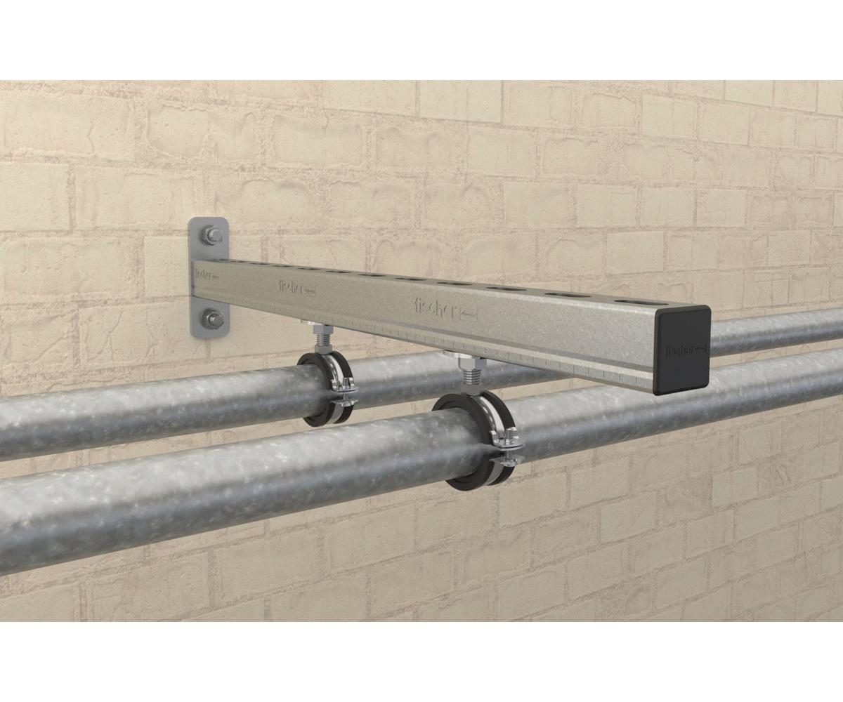 Die fischer Gelenkrohrschelle FGRS Plus ist eine Rohrschelle mit einer Schraube aus galvanisch verzinktem Stahl der Werkstoffgüte DD11 mit Kombi-Anschlussgewinde M 8 / M 10. Der Schnellverschluss und das Kombi-Anschlussgewinde ermöglichen eine einfache und zeitsparende Montage. Das Einrasten des Sicherheitsverschlusses garantiert die sichere Justage des Rohres ohne ein Aufspringen der Schelle. Damit können Rohrleitungen mit einem Außendurchmesser von 12 - 63 mm mit Gewindestange oder Stockschraube sicher im Innenbereich befestigt werden. Die Rohrschelle entspricht mit einer chlor- und silikonfreien Schalldämmeinlage den Anforderungen der DIN 4109.