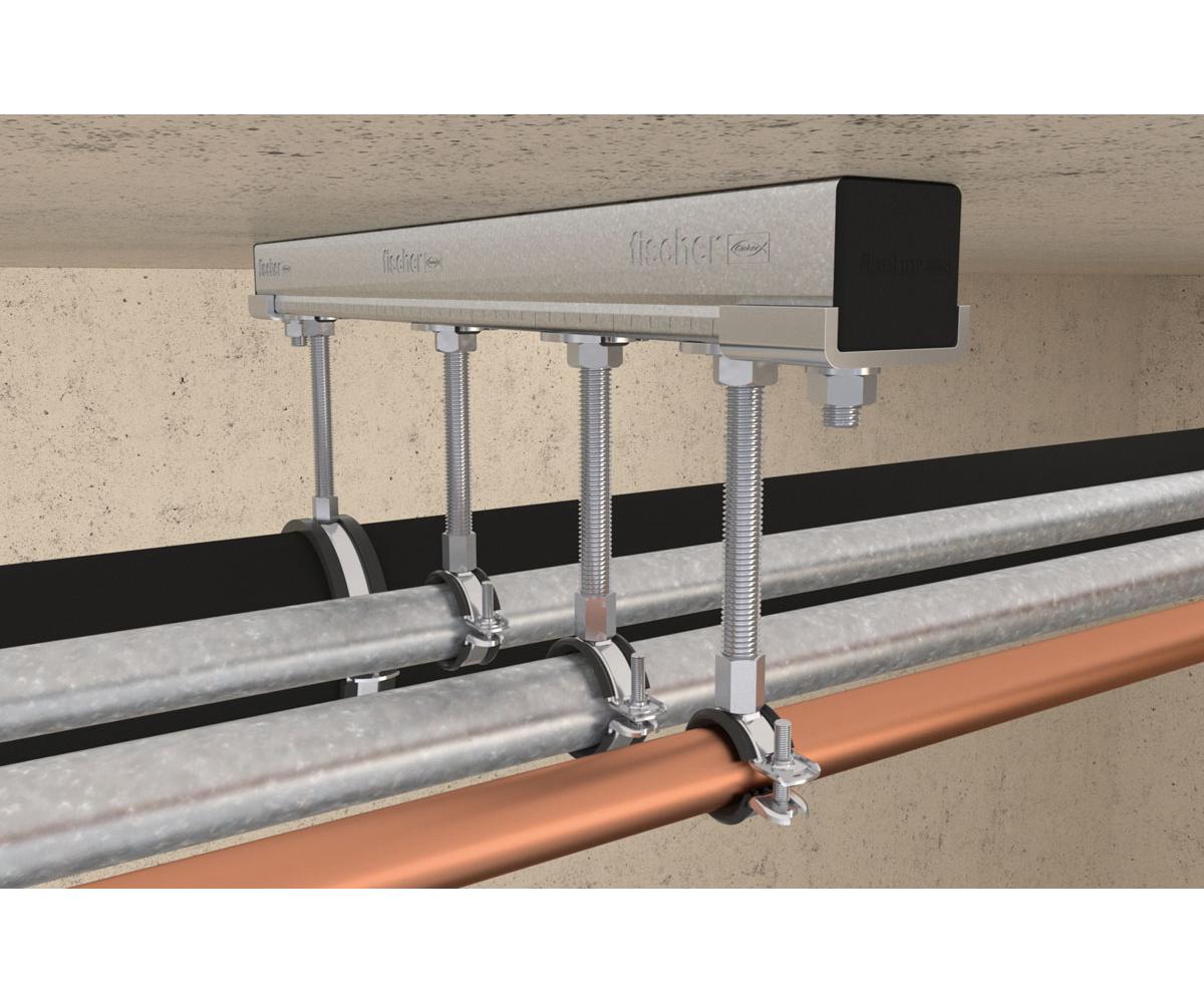 - Zeitsparendes Befestigen von Rohrleitungen bis 2“ mit Gewindestangen oder Stockschrauben