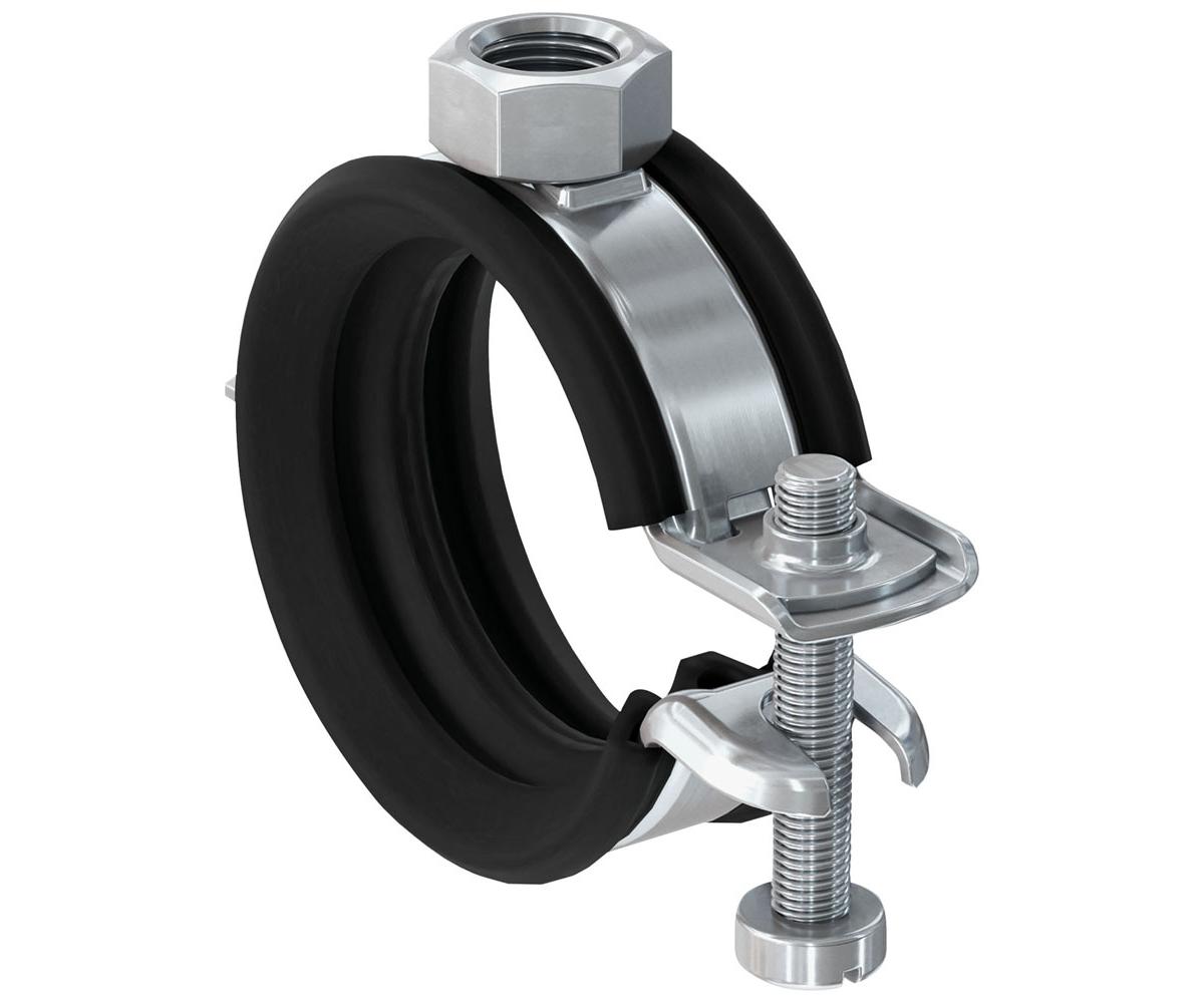 - Zeitsparendes Befestigen von Rohrleitungen bis 2“ mit Gewindestangen oder Stockschrauben