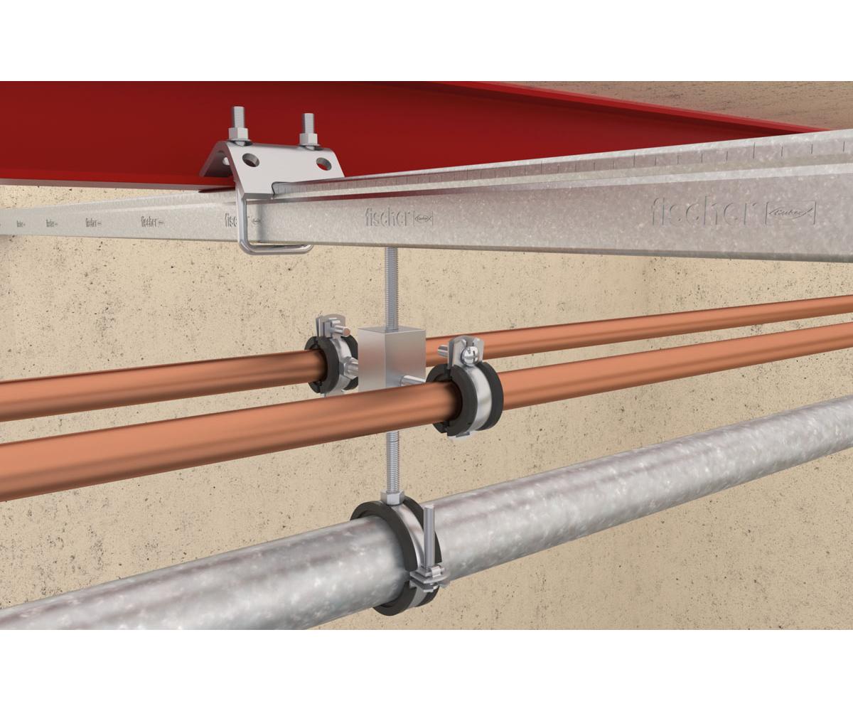 - Ökonomisches Befestigen von Rohrleitungen bis 2“ mit Gewindestangen oder Stockschrauben