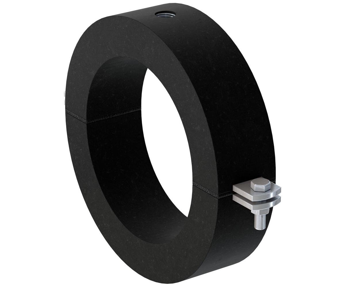 Die fischer Kälteschelle KFS aus geschlossenem PUR-Schaum ist eine Rohrschelle mit Anschlussgewinde M16 bis M24. Die Ausführung mit zwei seitlich angeordneten Schrauben ermöglicht die optimierte Anpassung an den Rohraußendurchmesser. Die eingeklebte Kautschukauflage reduziert zusätzlich den Montageaufwand. Damit können Rohrleitungen für die Kälte- und Klimatechnik mit einem Außendurchmesser von 273 - 609 mm und einer Dämmdicke von 60 mm mit einer oder zwei Gewindestangen, durch die Schraublöchern, sicher befestigt werden. Das altersbeständige Dämmmaterial sichert die optimale Funktion der Kälteschelle.