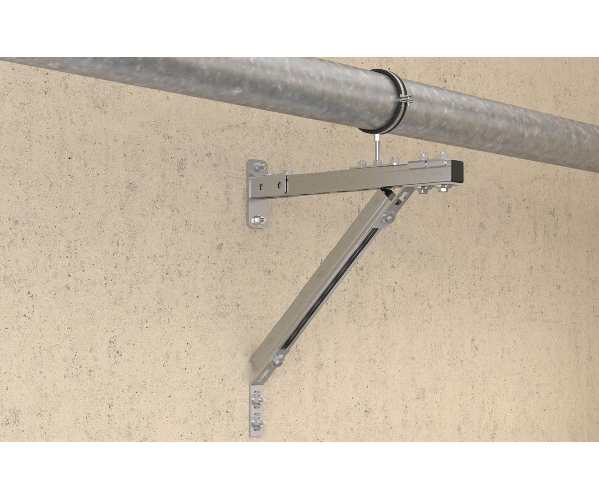- Befestigung von mittleren bis schweren Rohrleitungen mit Gewindestangen (Gewinderohr und Grundplatten)