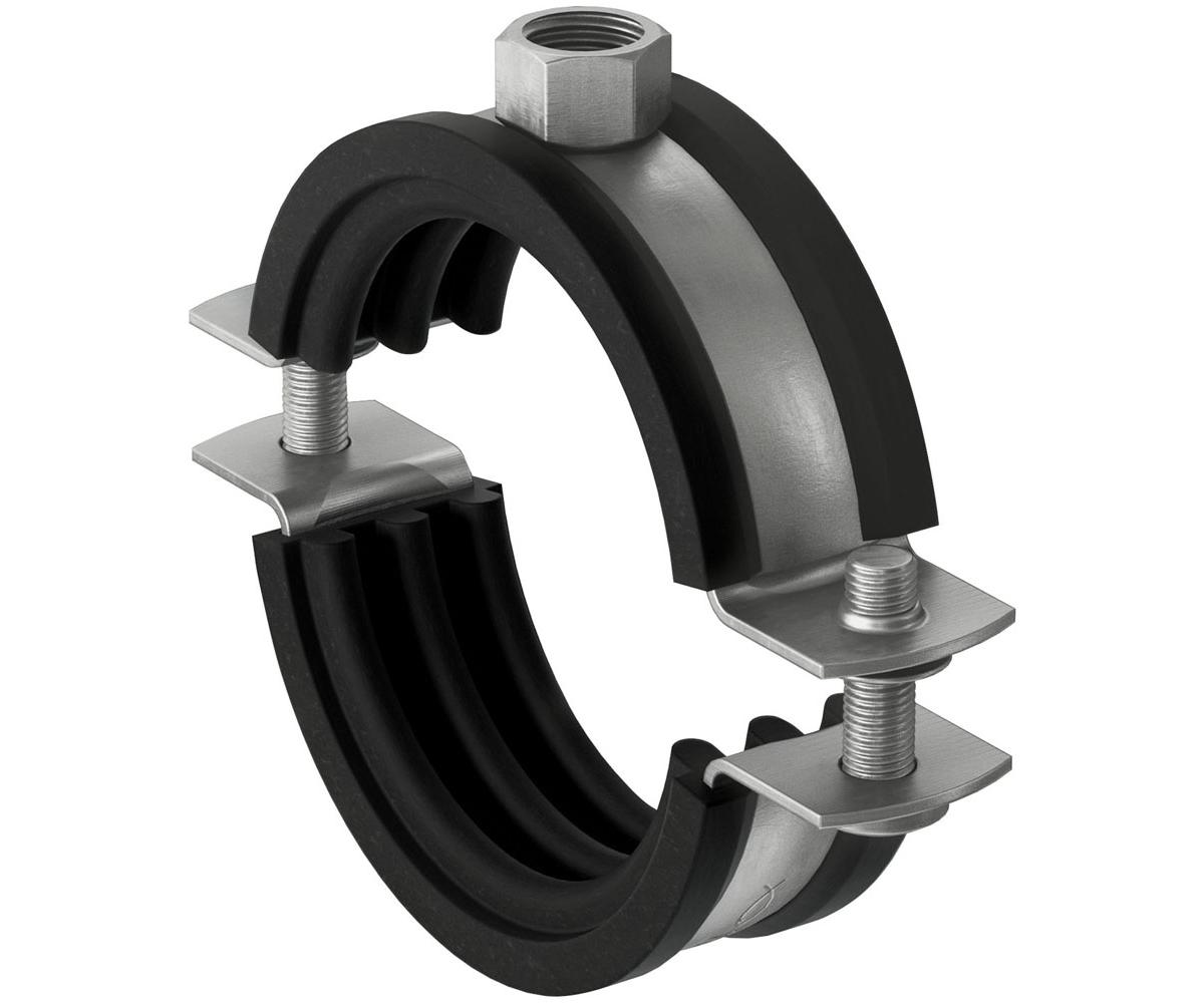 - Die Schalldämmeinlage gewährt die Schallreduzierung und verhindert Kontaktkorrosion.