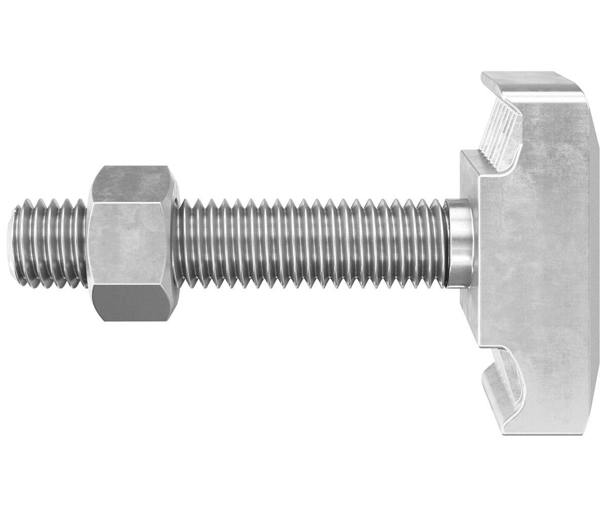 Verzahnte Hammerkopfschrauben mit InnoLock-Geometrie, welche mit der InnoLock-Ankerschiene einen maximalen Formschluss bilden.