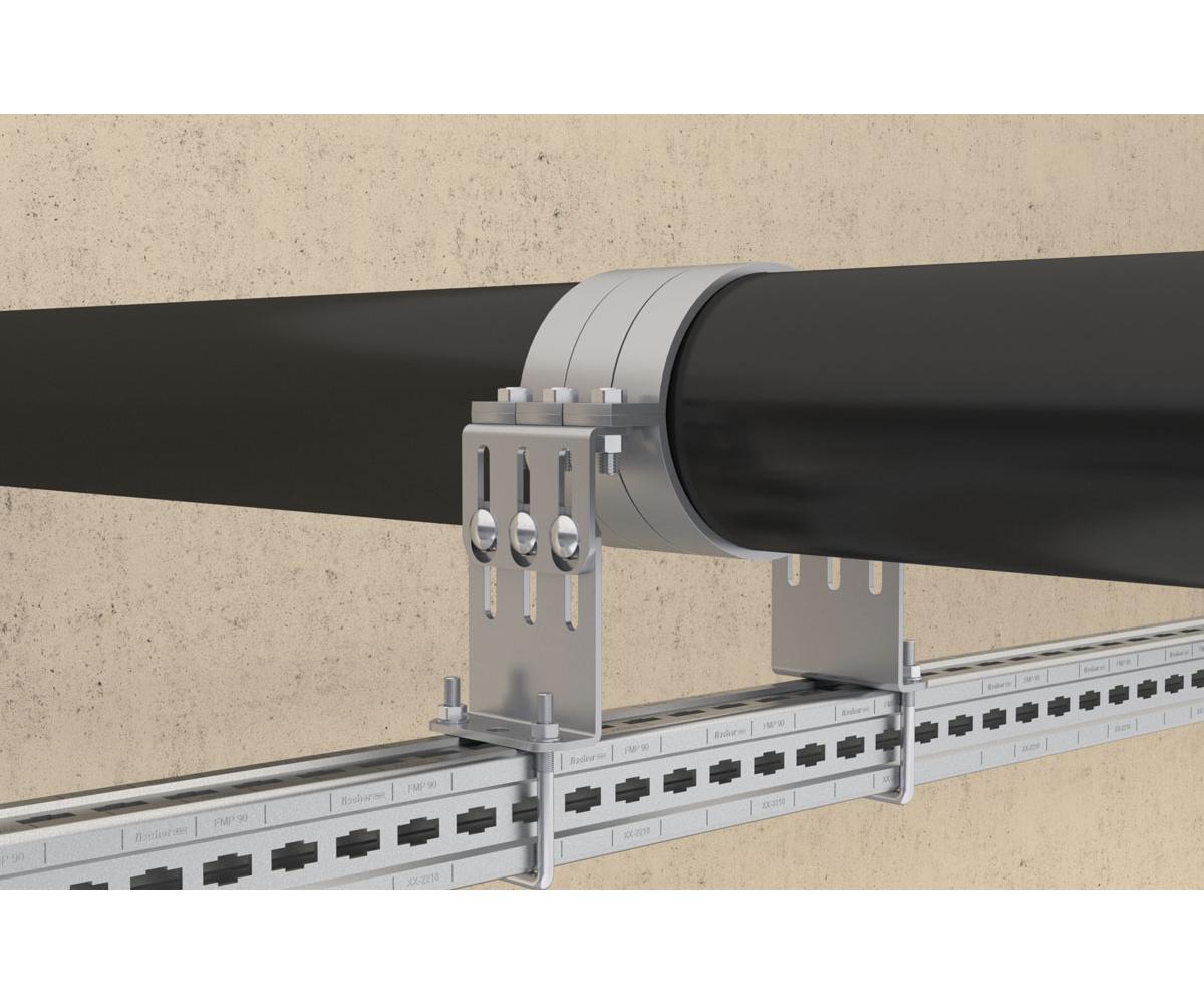 - Zur Verwendung mit der Rohrschelle FMFSC als Fixpunkt. Bis zu 3 Rohrschellen in Reihe möglich.