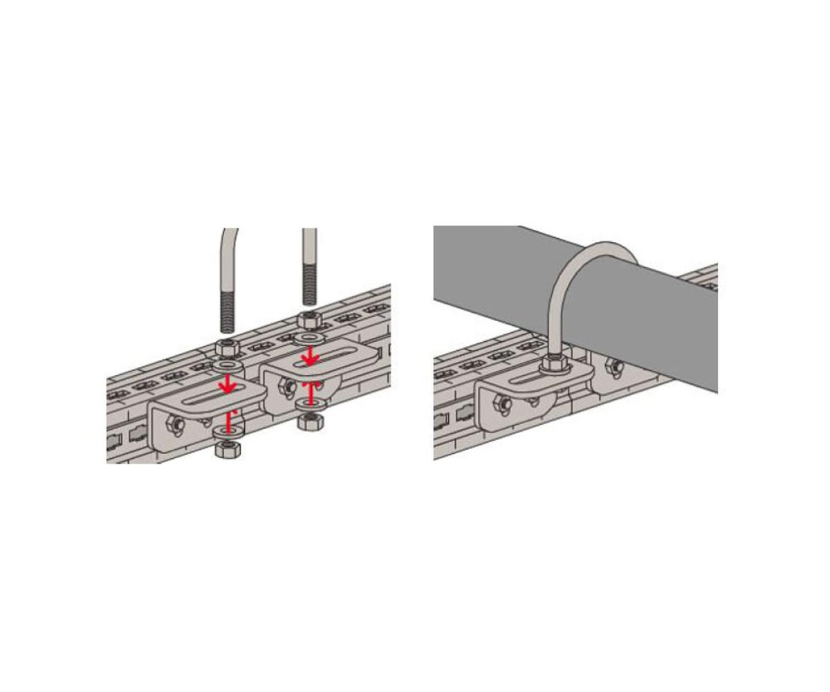 Werkstoff: Stahl S235JR (Werkstoff Nr. 1.0038) nach DIN EN 10025-2 • Verzinkung: feuerverzinkt, min. 55 µm, nach DIN EN ISO 1461 • Werkstoff Schraube: Stahl 8.8 • Werkstoff Mutter: Stahlfestigkeitsklasse 8