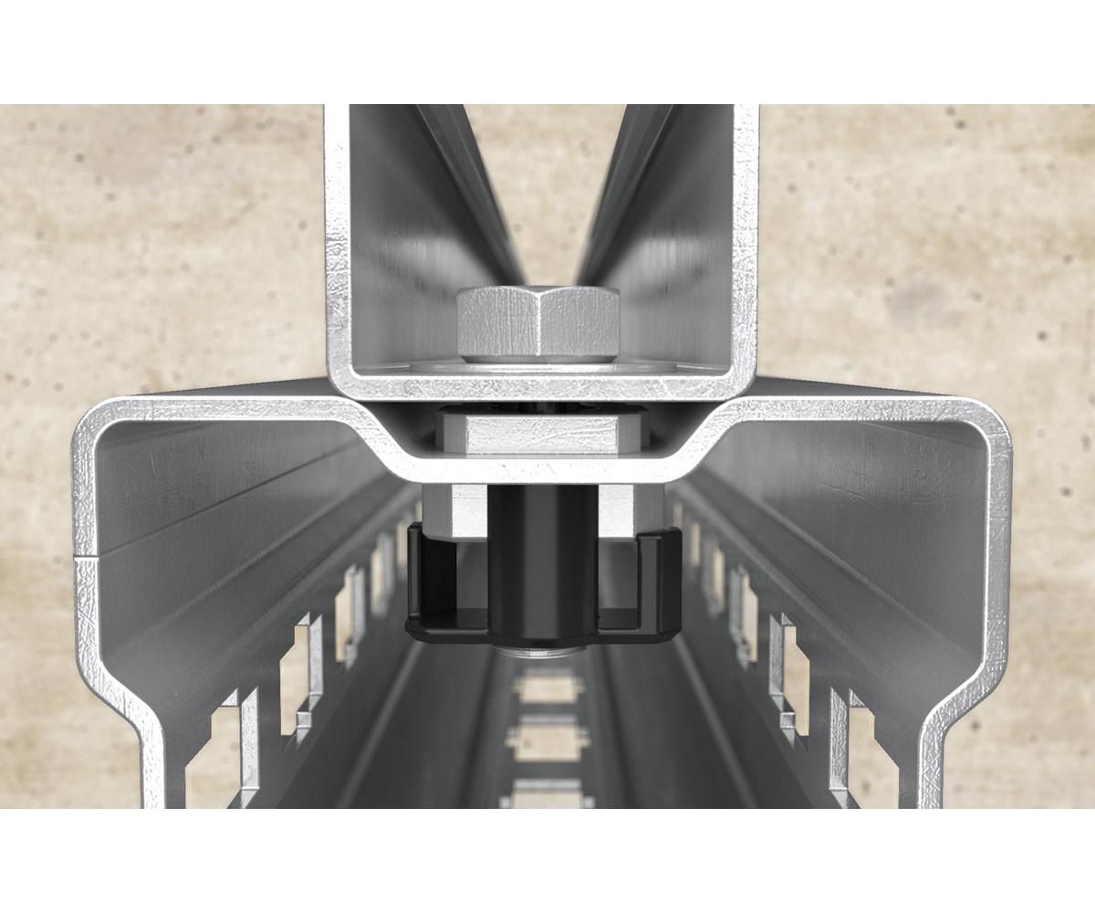 Die fischer Verbindungselemente des fischer Massiven Schienensystems FMS ermöglichen eine schnelle und einfache Verbindung an das Montageprofil FMP. Der fischer Hammerkopf-Steckverbinder FMHB eignet sich als vorgefertigter Verbinder zur Befestigung der Konstruktionselemente. Eine sichere Verbindung von Gewindestangen, Rohrschellen oder Grundplatten schaffen die Verbindungselemente FMHI, FMCE und FMCE-L. Das Verbindungselement FMCE-L ermöglicht mittels Langlöchern flexible Verbindungen für unterschiedliche Elemente wie Grundplatten oder U-Bügel. Die Ausführung in Feuerverzinkung eignet sich für die Installationen im Freien.