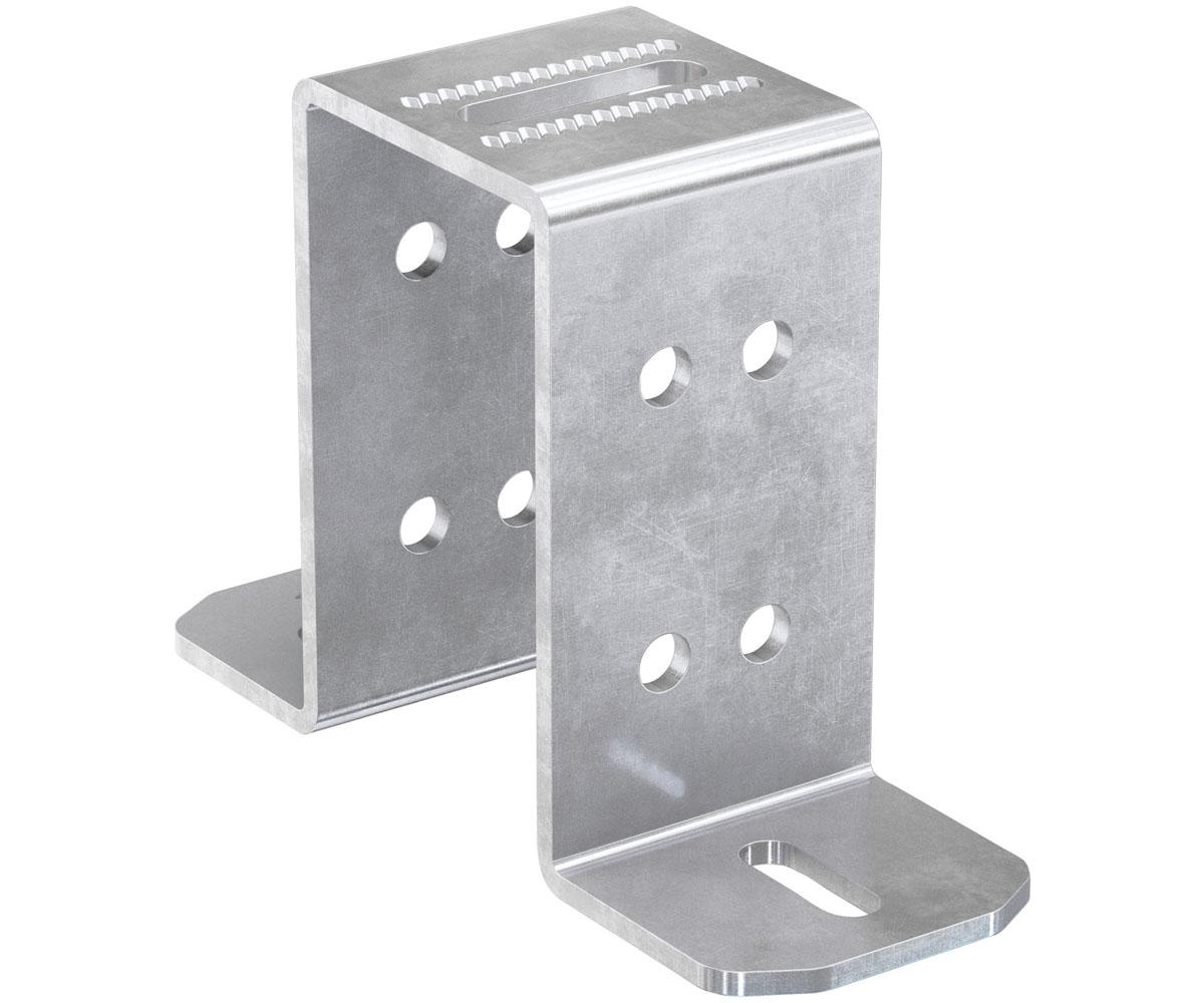- Die Ausführung des Verbindungselements FMUF mit Langlöchern und Rasterung passend zum Hammerkopf-Steckverbinder FMHB ermöglicht eine optimale Justage der Konstruktion und vereinfacht den Montageprozess.