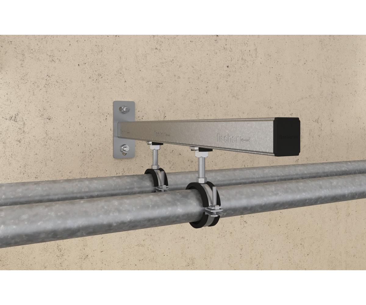 - FHS Clix ist geeignet, um Rohrschellen mit der Montageschiene zu verbinden.