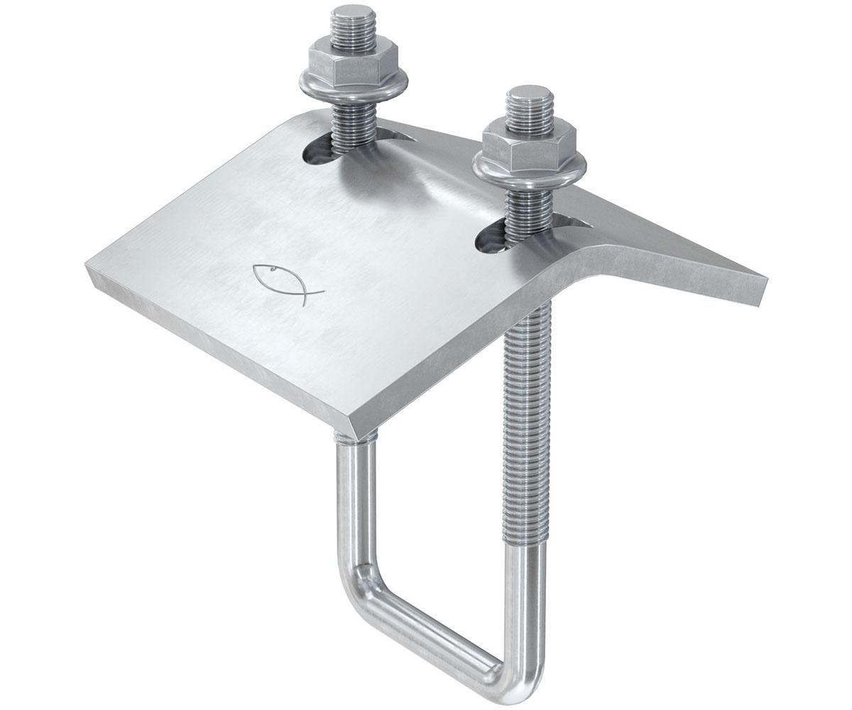 - Befestigung von FLS-Montageschienen an Stahlträger, erforderlich sind jeweils zwei Trägerkrallen.