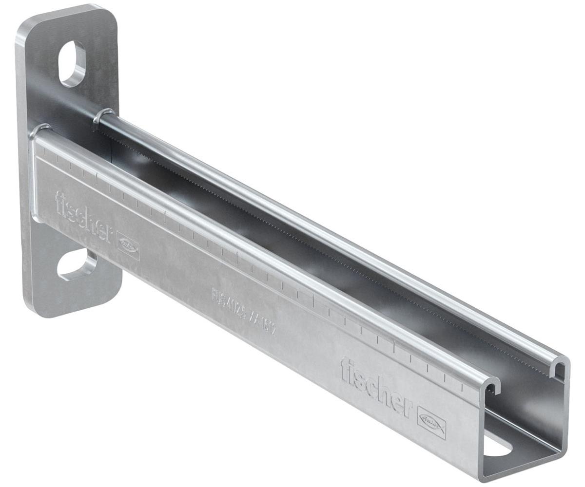 Die Auslegerkonsole FCA ist als zweites Basiselement des Schienensystems FUS für die Befestigung von Installationen wie Rohrtrassen entlang der Wand geeignet. Die Auslegerkonsole wird durch die um 90° zueinander gedrehten Langlöcher in der Grundplatte direkt am Untergrund befestigt. fischer bietet Standardlängen von 200 - 1000 mm, ein Ablängen ist somit nicht notwendig. Dies spart Zeit und Kosten. Die Ausführung mit galvanischer Verzinkung ist für Installationen in Gebäuden geeignet, die Versionen aus feuerverzinktem und nicht rostendem Stahl für die Installation im Freien und in hochkorrosiver Umgebung. Der Brandschutznachweis nach MLAR/EN13501 bietet ein Plus an Sicherheit.