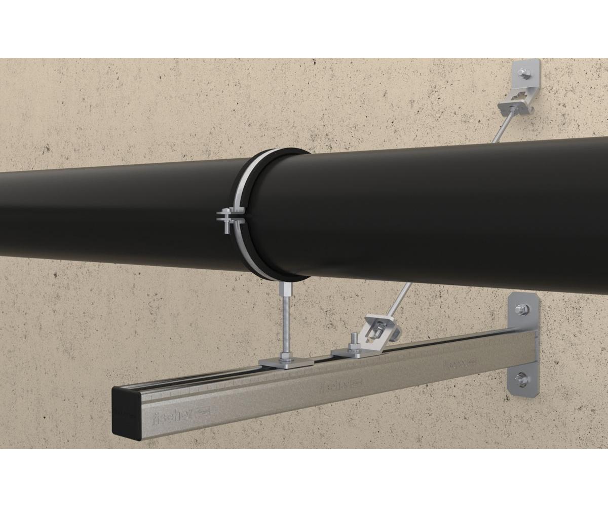 Die Auslegerkonsole FCA ist als zweites Basiselement des Schienensystems FUS für die Befestigung von Installationen wie Rohrtrassen entlang der Wand geeignet. Die Auslegerkonsole wird durch die um 90° zueinander gedrehten Langlöcher in der Grundplatte direkt am Untergrund befestigt. fischer bietet Standardlängen von 200 - 1000 mm, ein Ablängen ist somit nicht notwendig. Dies spart Zeit und Kosten. Die Ausführung mit galvanischer Verzinkung ist für Installationen in Gebäuden geeignet, die Versionen aus feuerverzinktem und nicht rostendem Stahl für die Installation im Freien und in hochkorrosiver Umgebung. Der Brandschutznachweis nach MLAR/EN13501 bietet ein Plus an Sicherheit.