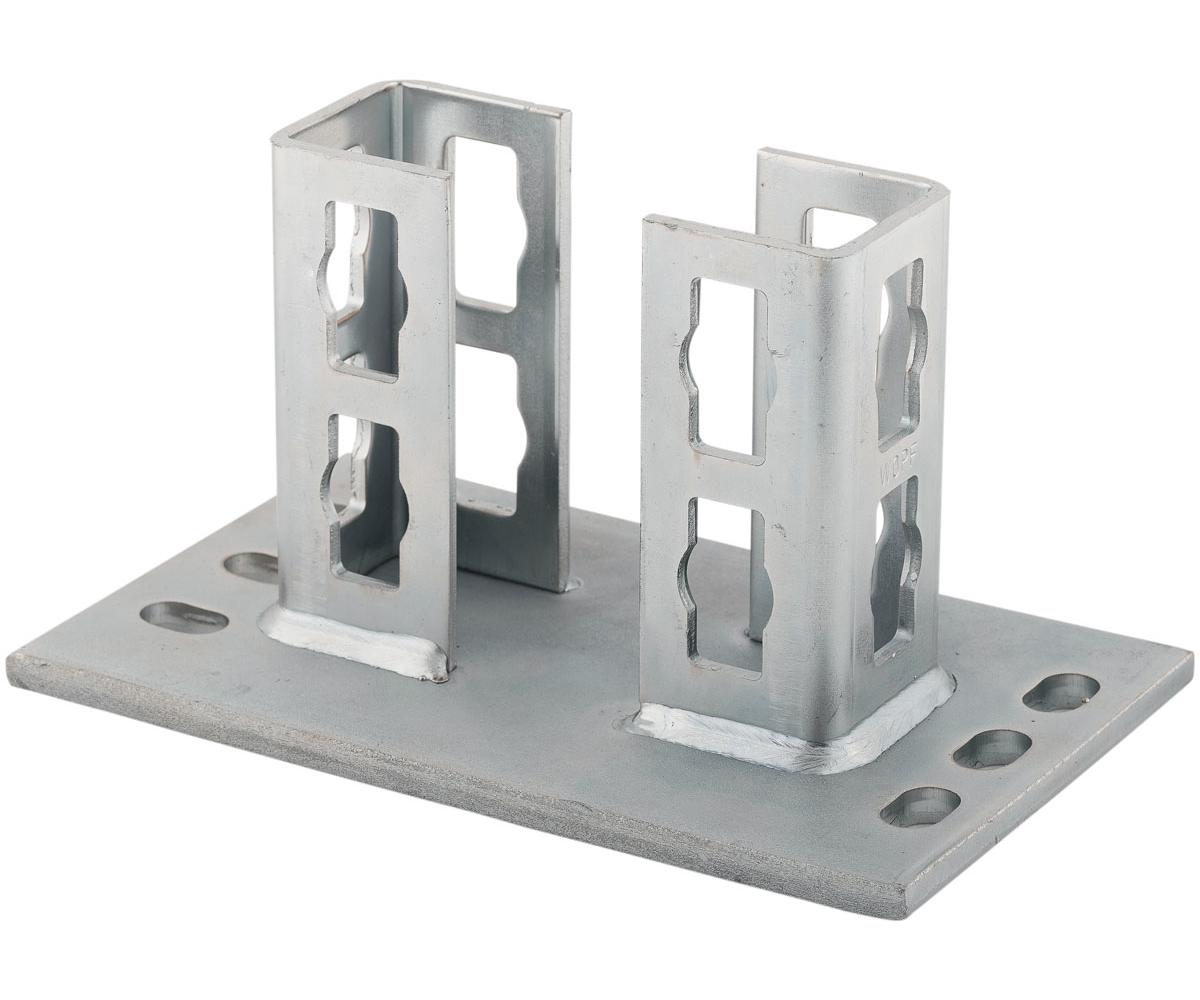 technische ZeichnungDer fischer Sattelflansch PSF schafft stabile Verbindungen zwischen fischer Montageschienen FUS und dem Bauwerk. Der Sattelflansch verbindet die Schienen mithilfe des fischer Durchsteck-Verbinders PFCN in einem Winkel von 90° mit dem Untergrund. Die mindestens dreiseitige Führung gewährt die Formschlüssigkeit mit den Montageschienen FUS und die Passgenauigkeit zum Einsetzen des Durchsteck-Verbinders. fischer bietet eine Querversion und drei Baugrößen der Standardausführung. Die stabile Grundplatte und die um 90° gedrehten Langlöcher erleichtern das Befestigen. Die Ausführung mit galvanischer Verzinkung ist für Installationen in Gebäuden geeignet, die Versionen aus feuerverzinktem und nicht rostendem Stahl für die Installation im Freien und in hochkorrosiver Umgebung.