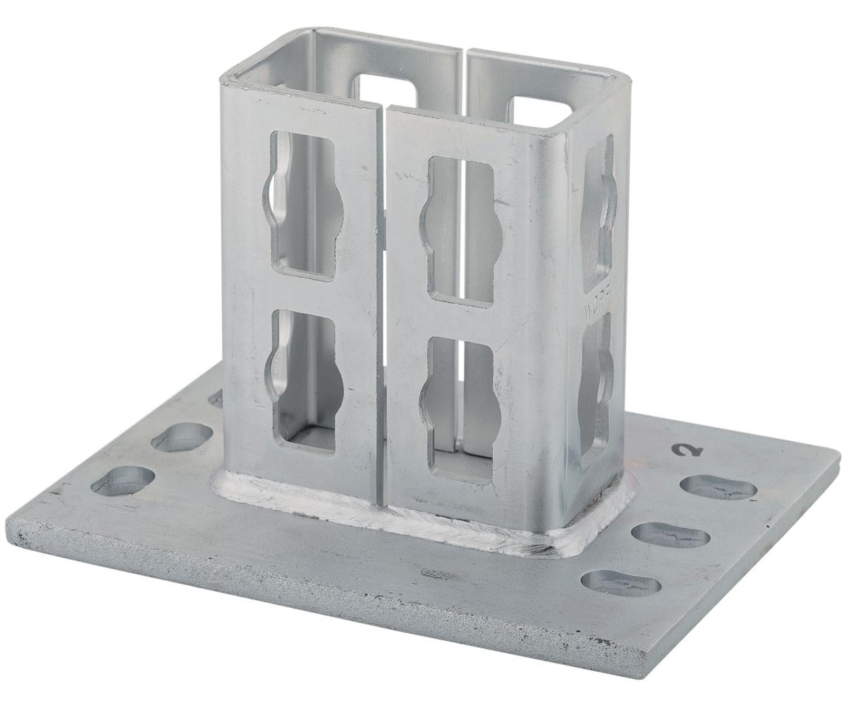 technische ZeichnungDer fischer Sattelflansch PSF schafft stabile Verbindungen zwischen fischer Montageschienen FUS und dem Bauwerk. Der Sattelflansch verbindet die Schienen mithilfe des fischer Durchsteck-Verbinders PFCN in einem Winkel von 90° mit dem Untergrund. Die mindestens dreiseitige Führung gewährt die Formschlüssigkeit mit den Montageschienen FUS und die Passgenauigkeit zum Einsetzen des Durchsteck-Verbinders. fischer bietet eine Querversion und drei Baugrößen der Standardausführung. Die stabile Grundplatte und die um 90° gedrehten Langlöcher erleichtern das Befestigen. Die Ausführung mit galvanischer Verzinkung ist für Installationen in Gebäuden geeignet, die Versionen aus feuerverzinktem und nicht rostendem Stahl für die Installation im Freien und in hochkorrosiver Umgebung.