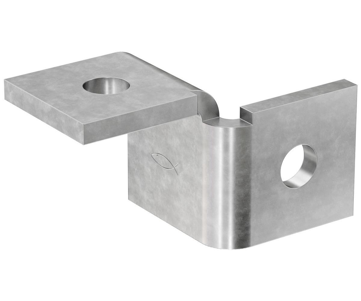 technische ZeichnungDas fischer Verbindungselement FZF ist eine Montageelement zur Gestaltung von mehrdimensionalen Schienenkonstruktionen. Die Lochung des Verbindungselement gewährleistet den Systemfit mit der FCN Clix P.