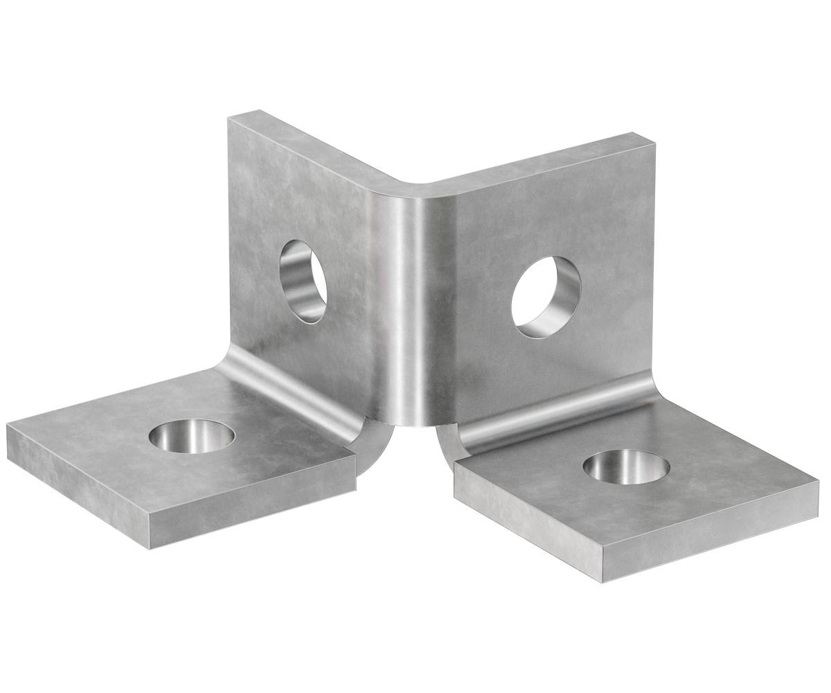 technische ZeichnungDas fischer Verbindungselement FZF ist eine Montageelement zur Gestaltung von mehrdimensionalen Schienenkonstruktionen. Die Lochung des Verbindungselement gewährleistet den Systemfit mit der FCN Clix P.