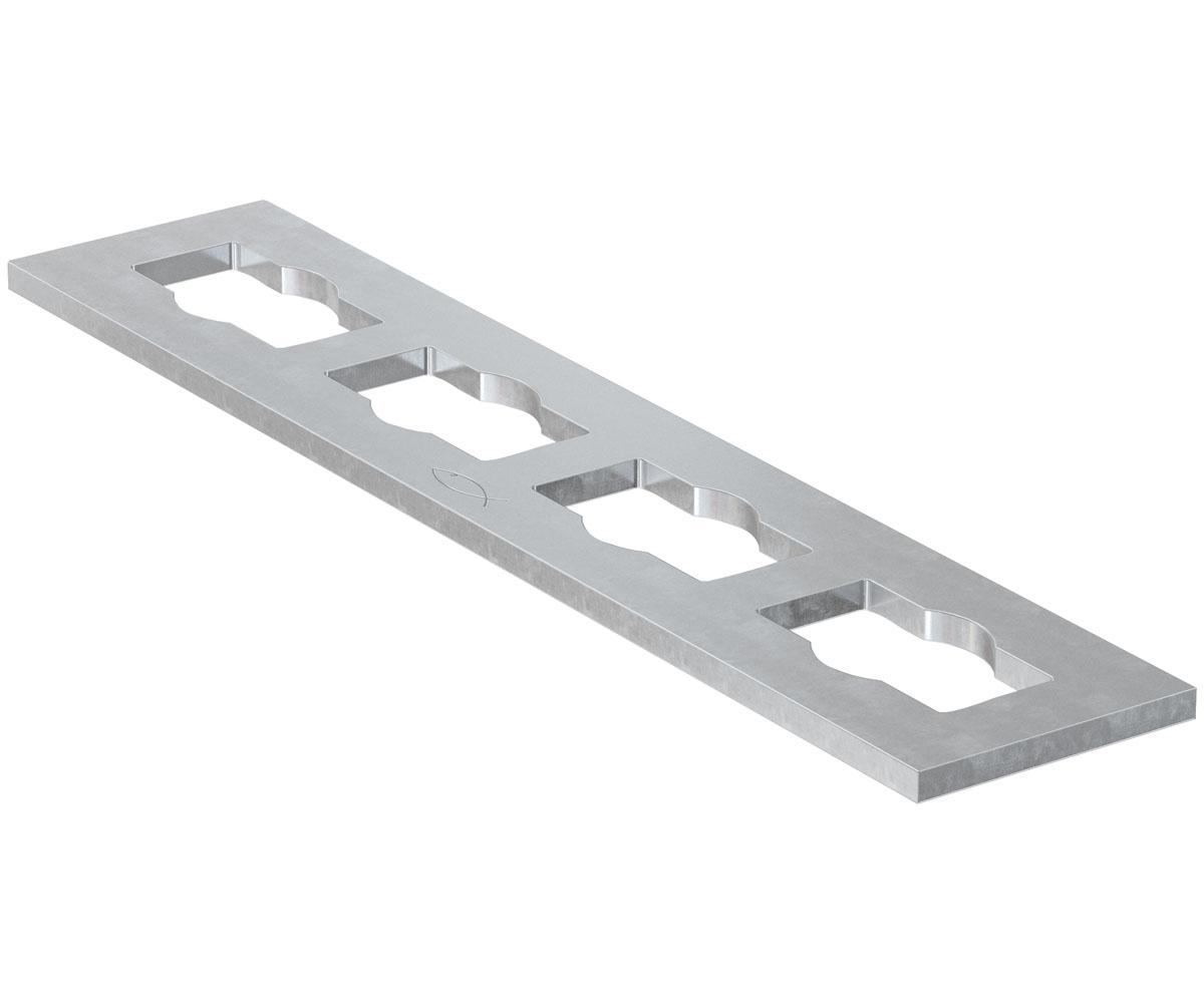 technische ZeichnungDie fischer Verbindungselemente PFFF eignen sich für den Aufbau von einfachen Schienensystemen. Die Verbindungselemente werden als Flachverbinder mit zwei Formlöchern oder als Längsverbinder mit vier Formlöchern zur Verbindung in der fischer Montageschiene FUS mit dem fischer Durchsteckverbinder PFCN angeboten. Die Flachverbinder können platzsparend zur Konstruktion von Schienenverbindungen verwendet werden. Die Ausführung mit galvanischer Verzinkung ist für Installationen in Gebäuden geeignet, die Versionen mit feuerverzinkter bzw. Zinklamellen (zl) Oberfläche und aus nicht rostendem Stahl sind für die Installation im Freien und hochkorrosiver Umgebung geeignet.