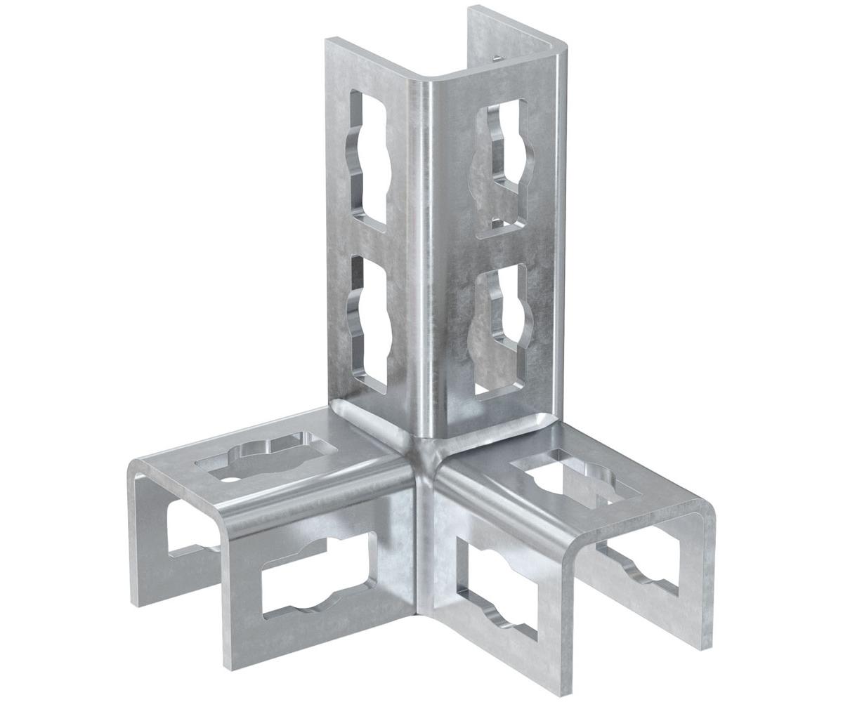 technische ZeichnungDie fischer Verbindungselemente PFUF 2D, 3D und 4D verbinden mehrdimensionale Konstruktionen mit den Montageschienen FUS und dem Durchsteckverbinder PFCN. Mit den PFUF 3D und 4D Verbindungselementen lassen sich mehrseitige Schachtkonstruktionen innerhalb kurzer Zeit leicht und einfach erstellen. Die Ausführung mit galvanischer Verzinkung ist für Installationen in Gebäuden geeignet, die Versionen mit feuerverzinkter bzw. Zinklamellen (zl) Oberfläche und aus nicht rostendem Stahl sind für die Installation im Freien und hochkorrosiver Umgebung geeignet.