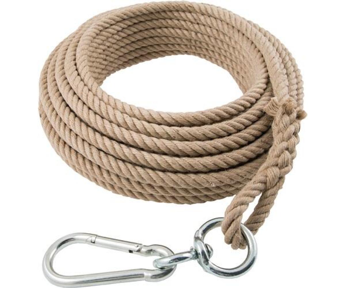 4-litzig gedreht · mit Schlaufe · eingehängtem Feuerwehrkarabinerhaken und Wirbel · Material Hanf