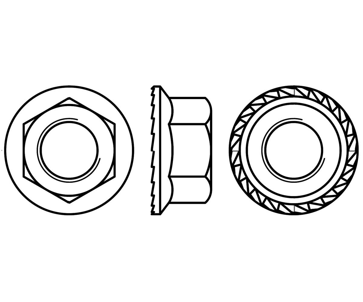 Sechkantmuttern mit Flansch und Sperrverzahnung DIN 6923