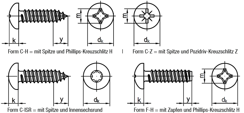 Linsenkopf-Blechschrauben mit Kreuzschlitz oder Innensechsrund