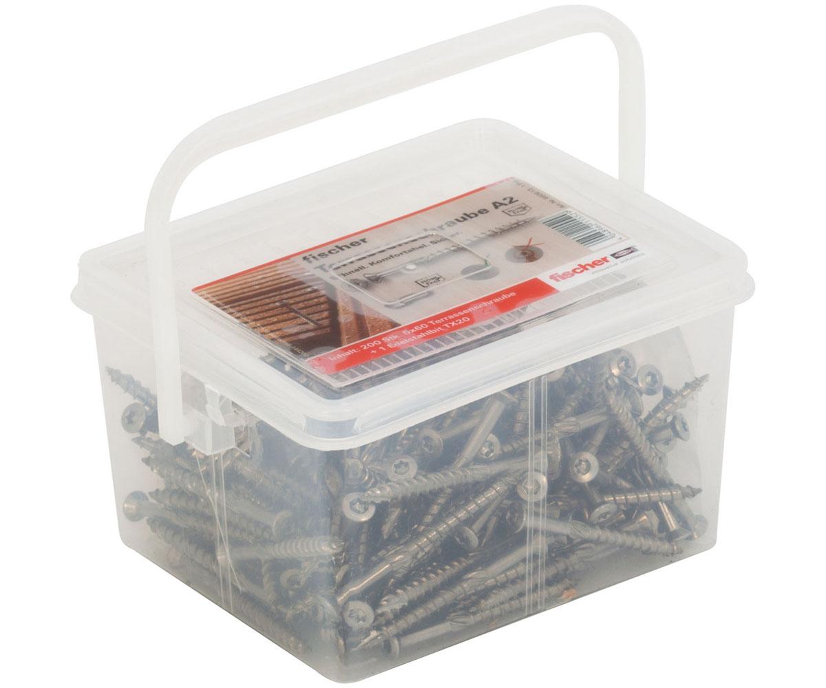 200 Terrassenschrauben A2 5,0 x 60, 1 Edelstahlbit TX 20