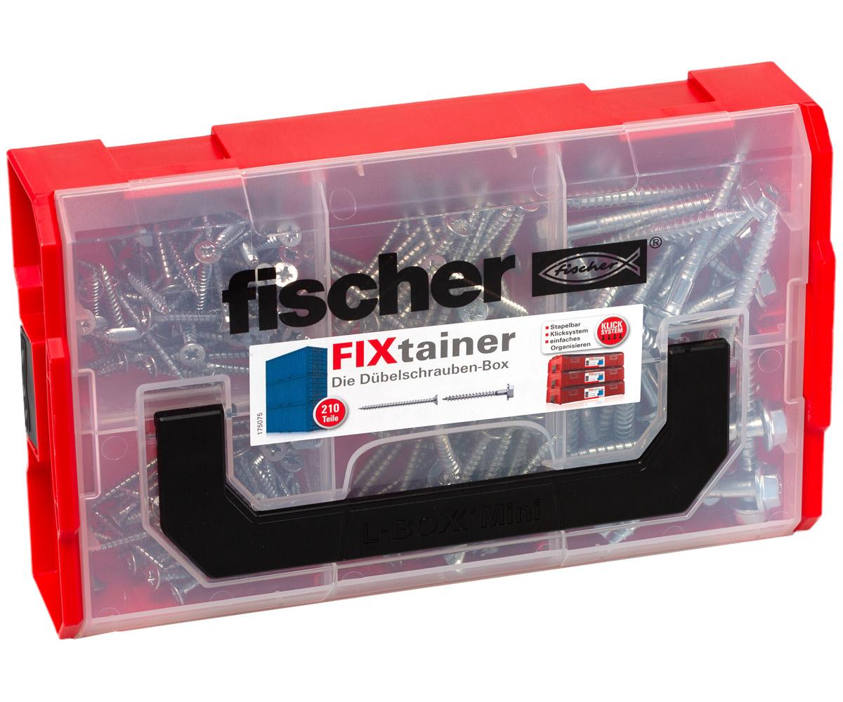 Die fischer FixTainer beinhaltet in einer praktischen und universell zu nutzenden Box für die häufigsten Anwendungen und Baustoffe Dübel, Schrauben und Haken. Das Zusammenwirken der optimal aufeinander abgestimmten Komponenten garantiert stets die Wahl einer sicheren Befestigungslösung. Dank des transparenten Deckels und der Sortierfächer ist der Inhalt auf einen Blick zu sehen. Dies spart Zeit und garantiert, dass das passende Befestigungselement ausgewählt wird. Die Beschreibung der Dübelfunktion und eine Übersicht der geeigneten Baustoffe auf der Unterseite des FixTainers bietet ein Plus an Sicherheit bei der Montage. Der fischer FixTainer lässt sich an dem großen Griff leicht transportieren. Mit dem Klick-System können auch mehrere Boxen fest verbunden werden. Die herausnehmbaren Trennelemente ermöglichen eine variable und bedarfsgerechte Einteilung.