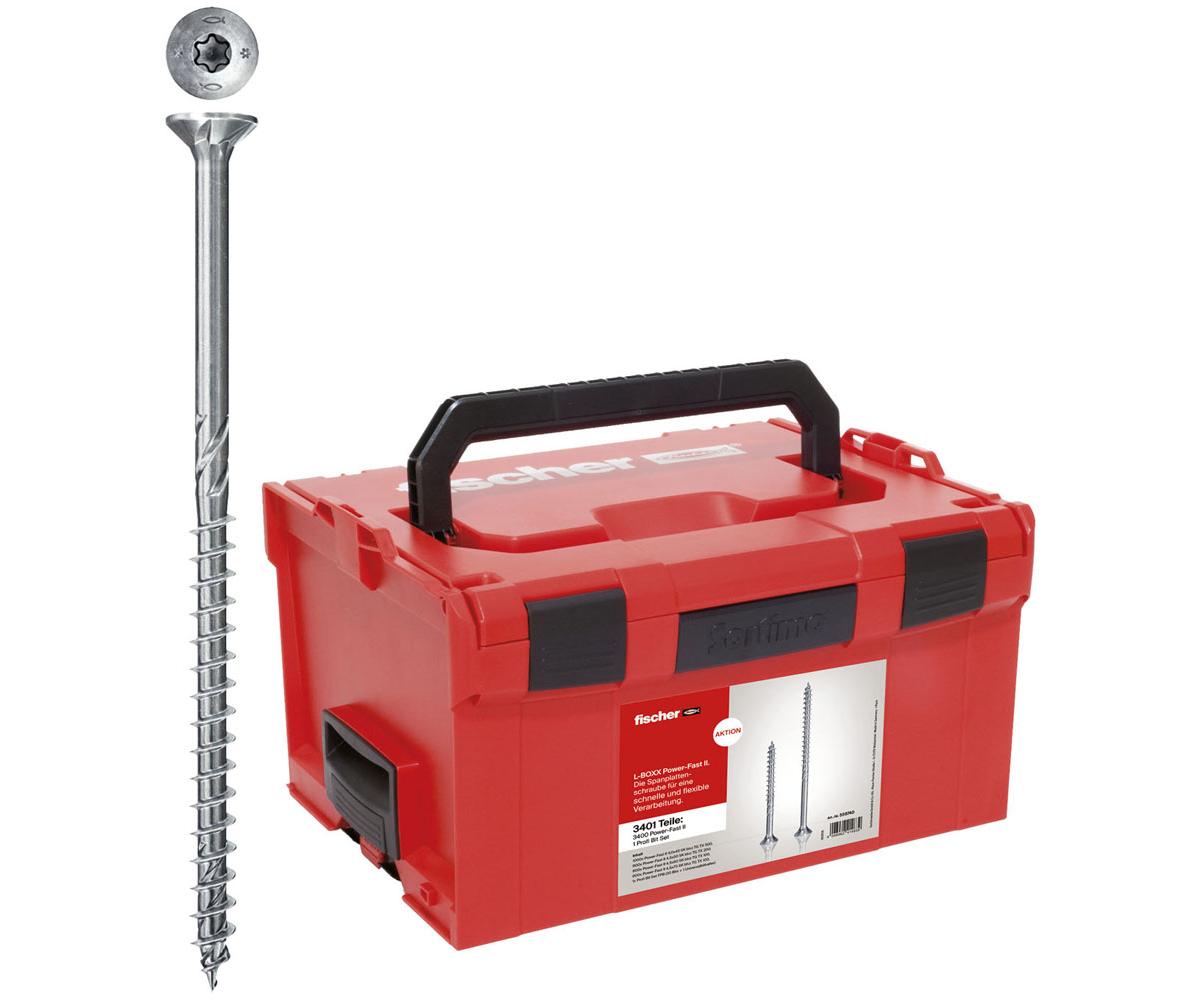Sichern Sie sich jetzt die praktische L-BOXX - gefüllt mit PowerFast II Schrauben mit Teilgewinde in den gängigen Abmessungen und einem ProfiBit Set. Die fischer PowerFast II ist eine galvanisch verzinkte, blau passivierte Schraube mit Voll- oder Teilgewinde und Innenstern-Aufnahme. Der Senkkopf ermöglicht die oberflächenbündige Montage im Holz. Die Ausführung mit Teilgewinde ermöglicht das feste Aneinanderziehen von Holzelementen. Die Schraube eignet sich für Befestigungen von tragenden Bauteilen in beschichtetem Holz, Hartholz, Weichholz und Holzverbindungen.