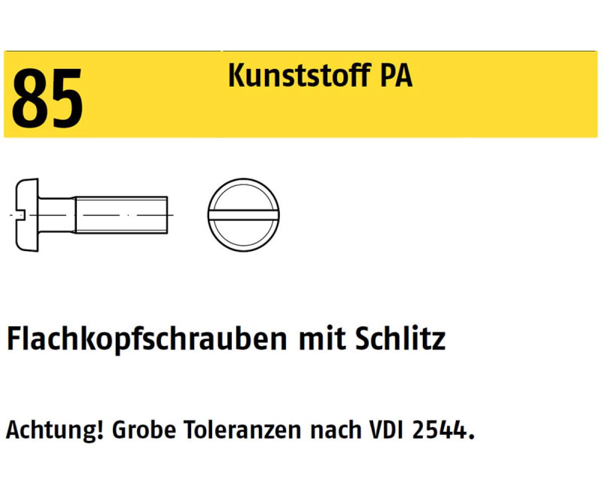 | Produkt-Typbezeichnung: | Flachkopfschrauben mit Schlitz, Produktklasse A |