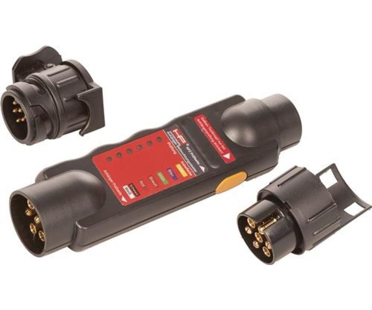 Zur Überprüfung der Beleuchtungsanlage an Anhänger, Wohnwagen und Zugfahrzeugen mit 12V-Anschluss · Es können die Funktionen der Fahrzeugsteckdose bzw. des Anhängersteckers getestet werden· mit LED-Anzeige der jeweiligen Farbe des funktionierenden Kabels · Inhalt 3-teilig · Abmessungen 19,5 x 5 x 4 cm · SB verpackt