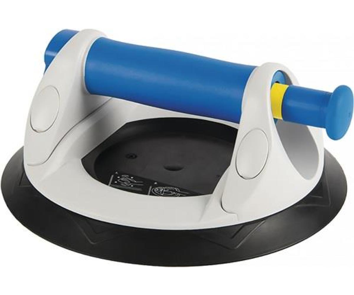 aus Kunststoff · mit eingebauter Handpumpe · Vakuumaufbau durch betätigen des Pumpenstößels · Belüftungshebel gegen unbeabsichtigtes Betätigen gesichert · Sicherungsring für optische Kontrolle der vollen Tragleistung · profilierte Gummischeibe mit 4 Dichtlippen · im Kunststoffkoffer · Gummischeiben auswechselbar · Griff-Ø 3 - 3,5 cm