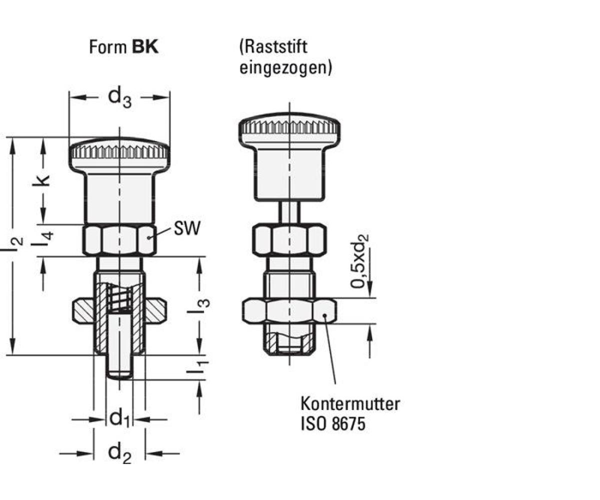 | Ausführung | Stahl, ohne Rastsperre, mit Kontermutter |