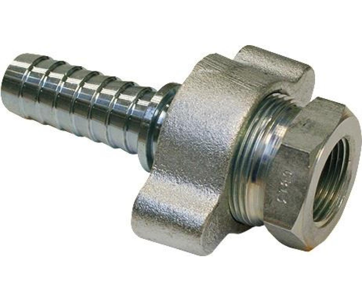 Schlauchstutzen mit Sicherungsbund · Überwurfmutter und Adapter mit NPT-Innengewinde